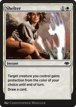 Target creature you control gains protection from the color of your choice until end of turn. Draw a card.