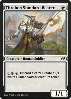 {1}{W}, {T}, Discard a card: Create a 1/1 white Human Soldier creature token.