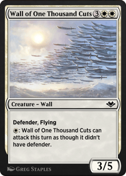 Defender, flying {W}: This creature can attack this turn as though it didn't have defender.