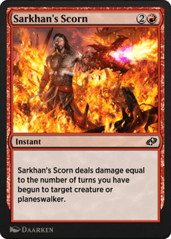 Sarkhan's Scorn deals damage equal to the number of turns you have begun to target creature or planeswalker.