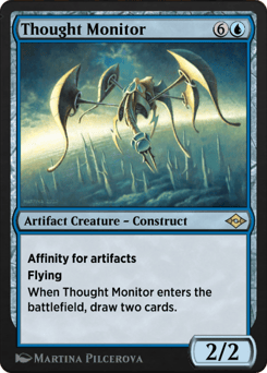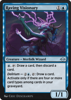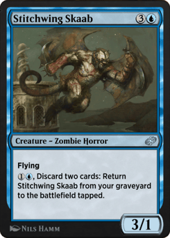 Flying When this creature enters, draw two cards, then discard three cards.
