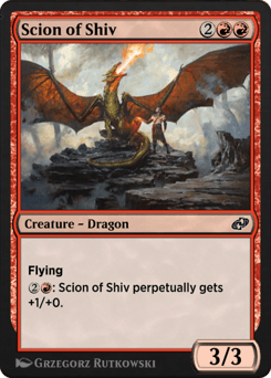 Flying {2}{R}: Scion of Shiv perpetually gets +1/+0.