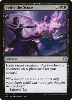 Exile target creature. Put two loyalty counters on a planeswalker you control.
