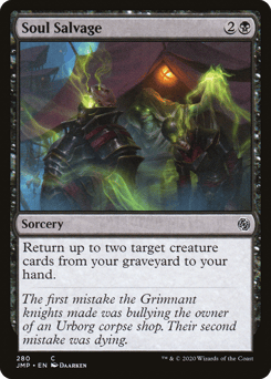 Return up to two target creature cards from your graveyard to your hand, then discard a card.