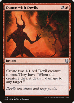 Create two 1/1 red Devil creature tokens. They have "When this token dies, it deals 1 damage to any target."