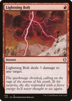 Chain Lightning deals 3 damage to any target. Then that player or that permanent's controller may pay {R}{R}. If the player does, they may copy this spell and may choose a new target for that copy.