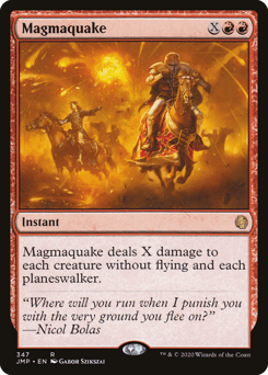 Magmaquake deals X damage to each creature without flying and each planeswalker.