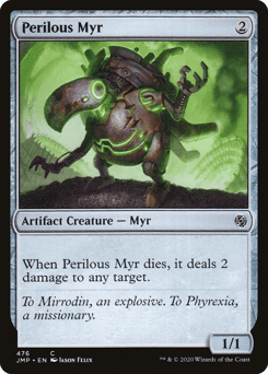 Enchant creature At the beginning of your upkeep, enchanted creature's controller sacrifices it and you create a 1/1 colorless Phyrexian Myr artifact creature token.