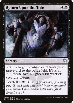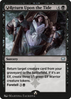 Choose a creature type. Return up to two creature cards of that type from your graveyard to the battlefield. If this spell was foretold, return all creature cards of that type from your graveyard to the battlefield instead. Foretell {5}{B}{B} (During your turn, you may pay {2} and exile this card from your hand face down. Cast it on a later turn for its foretell cost.)