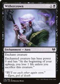 Enchant creature When this Aura enters, tap enchanted creature. It deals damage to you equal to its power. Enchanted creature doesn't untap during its controller's untap step.