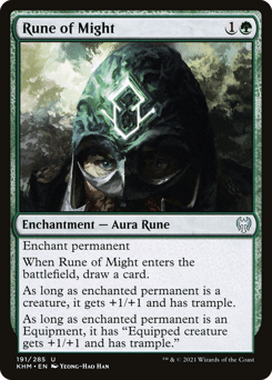 When this creature enters, you may search your library and/or graveyard for a Rune card, reveal it, and put it into your hand. If you search your library this way, shuffle. You may pay {1} rather than pay the mana cost for Rune spells you cast.