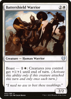 Boast — {1}{W}: Create a 1/1 white Human Warrior creature token. (Activate only if this creature attacked this turn and only once each turn.)