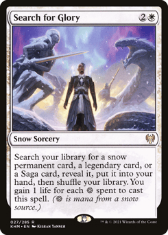 Search your library for a snow permanent card, a legendary card, or a Saga card, reveal it, put it into your hand, then shuffle. You gain 1 life for each {S} spent to cast this spell. ({S} is mana from a snow source.)
