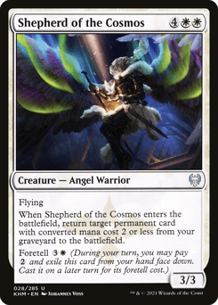 Flying When this creature enters, return target permanent card with mana value 2 or less from your graveyard to the battlefield. Foretell {3}{W} (During your turn, you may pay {2} and exile this card from your hand face down. Cast it on a later turn for its foretell cost.)
