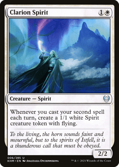 Whenever you cast your second spell each turn, create a 1/1 white Spirit creature token with flying.