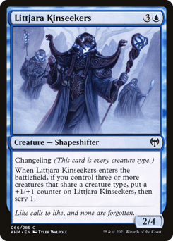Changeling (This card is every creature type.) When this creature enters, if you control three or more creatures that share a creature type, put a +1/+1 counter on this creature, then scry 1.