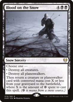 Choose one — • Destroy all creatures. • Destroy all planeswalkers. Then return a creature or planeswalker card with mana value X or less from your graveyard to the battlefield, where X is the amount of {S} spent to cast this spell. ({S} is mana from a snow source.)