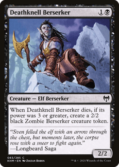 When this creature dies, if its power was 3 or greater, create a 2/2 black Zombie Berserker creature token.