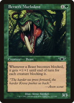 This creature can't block. Whenever this creature deals combat damage to a creature, destroy that creature. It can't be regenerated.