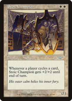 Whenever a player cycles a card, this creature gets +2/+2 until end of turn.
