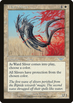 As this creature enters, choose a color. All Slivers have protection from the chosen color.