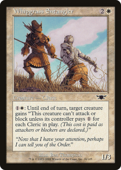 {1}{W}: Until end of turn, target creature gains "This creature can't attack or block unless its controller pays {1} for each Cleric on the battlefield."