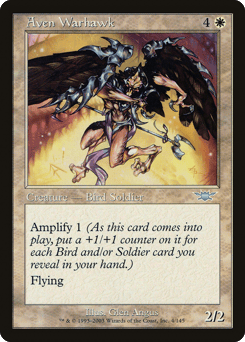 Amplify 1 (As this creature enters, put a +1/+1 counter on it for each Bird and/or Soldier card you reveal in your hand.) Flying