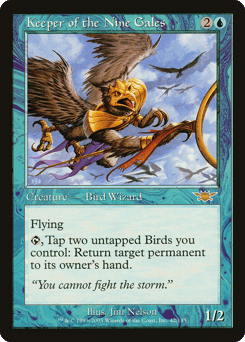 Flying Tap two untapped Birds you control: Draw a card. Tap two untapped Wizards you control: Target creature gains flying until end of turn.