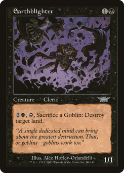 {2}{B}, {T}, Sacrifice a Goblin: Destroy target land.