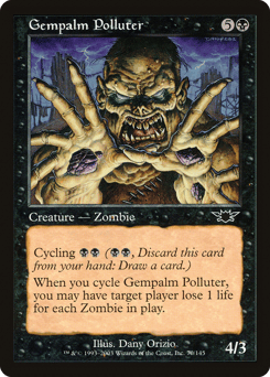At the beginning of your upkeep, you draw X cards and you lose X life, where X is the number of Zombies you control.