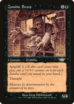 Amplify 1 (As this creature enters, put a +1/+1 counter on it for each Zombie card you reveal in your hand.) Trample