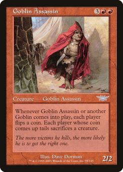 Whenever this creature or another Goblin enters, each player flips a coin. Each player whose coin comes up tails sacrifices a creature of their choice.