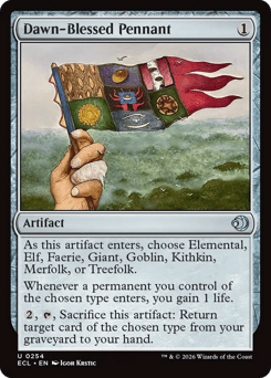 As this artifact enters, choose Elemental, Elf, Faerie, Giant, Goblin, Kithkin, Merfolk, or Treefolk. Whenever a permanent you control of the chosen type enters, you gain 1 life. {2}, {T}, Sacrifice this artifact: Return target card of the chosen type from your graveyard to your hand.