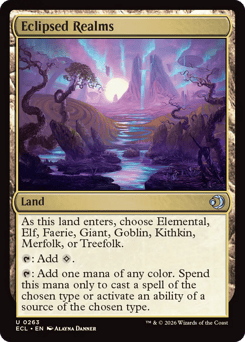 As this land enters, choose Elemental, Elf, Faerie, Giant, Goblin, Kithkin, Merfolk, or Treefolk. {T}: Add {C}. {T}: Add one mana of any color. Spend this mana only to cast a spell of the chosen type or activate an ability of a source of the chosen type.