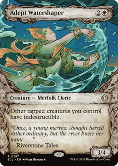 Flash When this creature enters, untap each other Merfolk you control. As long as you attacked with three or more Merfolk this turn, Merfolk you control get +1/+0.