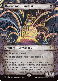 {T}, Blight 1: Surveil 1. {T}, Blight 2: Exile target card from a graveyard. During your turn, you may cast creature spells from among cards you own exiled with this creature by removing three counters from among creatures you control in addition to paying their other costs.