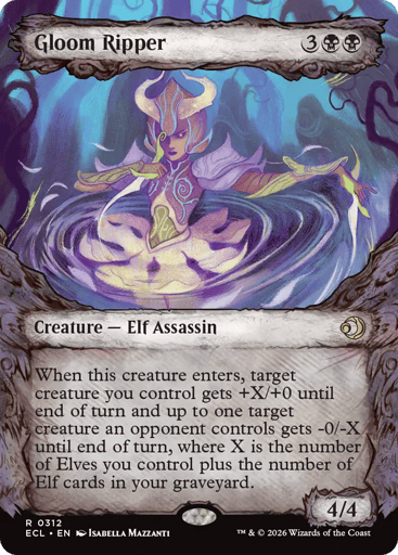 When this creature enters, target creature you control gets +X/+0 until end of turn and up to one target creature an opponent controls gets -0/-X until end of turn, where X is the number of Elves you control plus the number of Elf cards in your graveyard.