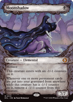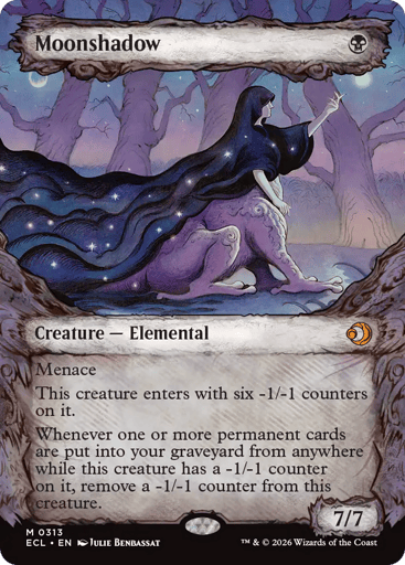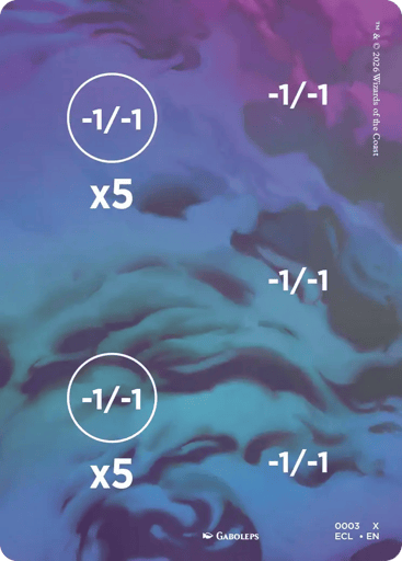 Menace This creature enters with six -1/-1 counters on it. Whenever one or more permanent cards are put into your graveyard from anywhere while this creature has a -1/-1 counter on it, remove a -1/-1 counter from this creature.