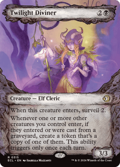 At the beginning of your end step, if another creature entered the battlefield under your control this turn, surveil 1. (Look at the top card of your library. You may put it into your graveyard.)