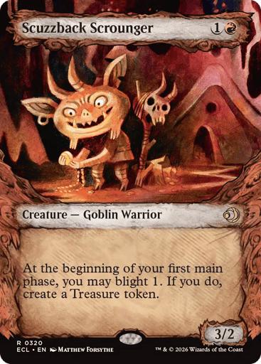 At the beginning of your first main phase, you may blight 1. If you do, create a Treasure token. (To blight 1, put a -1/-1 counter on a creature you control. A Treasure token is an artifact with "{T}, Sacrifice this token: Add one mana of any color.")