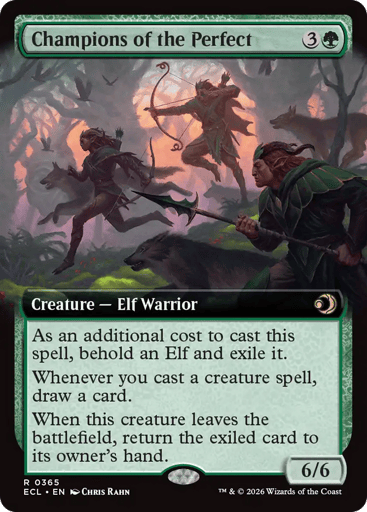 As an additional cost to cast this spell, behold an Elf and exile it. (Exile an Elf you control or an Elf card from your hand.) Whenever you cast a creature spell, draw a card. When this creature leaves the battlefield, return the exiled card to its owner's hand.
