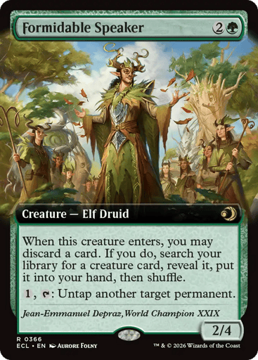 When this creature enters, look at the top four cards of your library. You may reveal an Elf, Swamp, or Forest card from among them and put it into your hand. Put the rest on the bottom of your library in a random order.