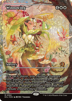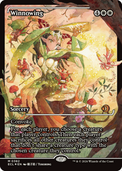 Convoke (Your creatures can help cast this spell. Each creature you tap while casting this spell pays for {1} or one mana of that creature's color.) For each player, you choose a creature that player controls. Then each player sacrifices all other creatures they control that don't share a creature type with the chosen creature they control.