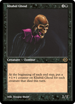 At the beginning of each end step, put a +1/+1 counter on this creature for each creature that died this turn.