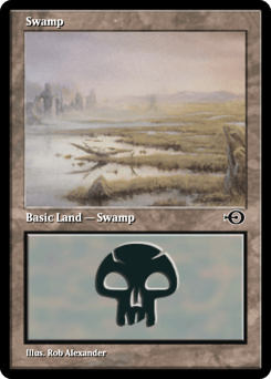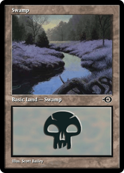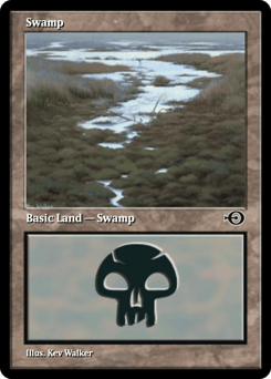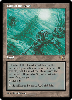 If this land would enter, sacrifice a Swamp instead. If you do, put this land onto the battlefield. If you don't, put it into its owner's graveyard. {T}: Add {B}. {T}, Sacrifice a Swamp: Add {B}{B}{B}{B}.