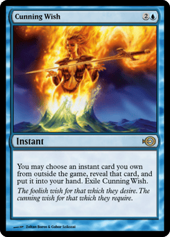 You may reveal an instant card you own from outside the game and put it into your hand. Exile Cunning Wish.