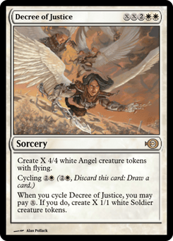 Create X 4/4 white Angel creature tokens with flying. Cycling {2}{W} ({2}{W}, Discard this card: Draw a card.) When you cycle this card, you may pay {X}. If you do, create X 1/1 white Soldier creature tokens.
