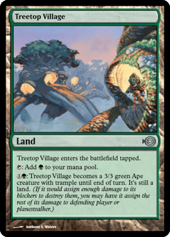 This land enters tapped. {T}: Add {G}. {1}{G}: This land becomes a 3/3 green Ape creature with trample until end of turn. It's still a land. (It can deal excess combat damage to the player or planeswalker it's attacking.)