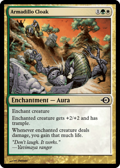 Enchant creature Enchanted creature gets +2/+2 and has trample. Whenever enchanted creature deals damage, you gain that much life.
