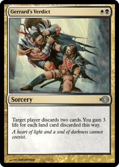 Target player discards two cards. You gain 3 life for each land card discarded this way.